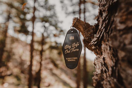 Stay Safe Out There Vintage Motel Keychain